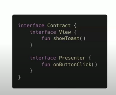 아래와 같이 Contract Interface 안에 View와 Presenter 인터페이스를 만들 수 있다.