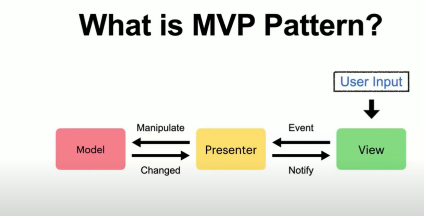 이전에 설명한 MVC 패턴에서 Controller를 Presenter로 교체한 것이다.