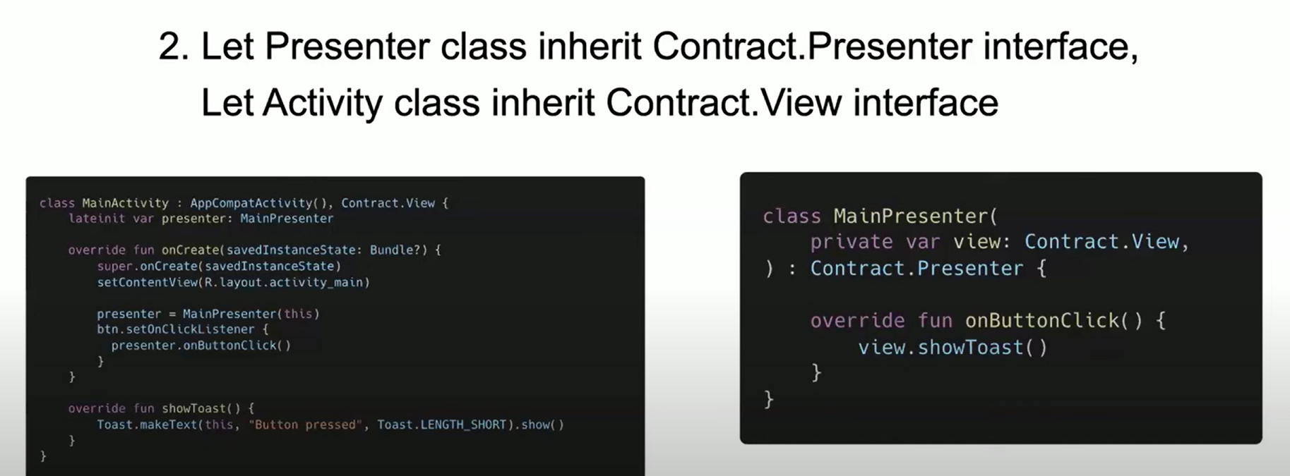 아래 버튼은 클릭시 Presenter에게 이벤트를 알려주게 되는 예시