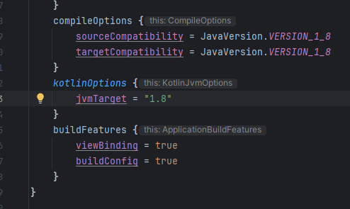 아래의 코드를 buildFeatures에 추가하면 된다.