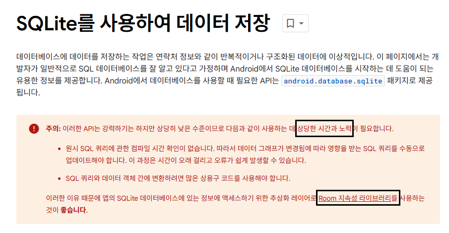 https://developer.android.com/training/data-storage/room/accessing-data?hl=ko