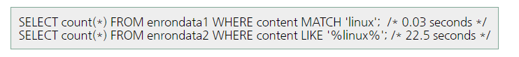 FTS3에서는 0.03초 밖에 안 걸렸다고 한다.