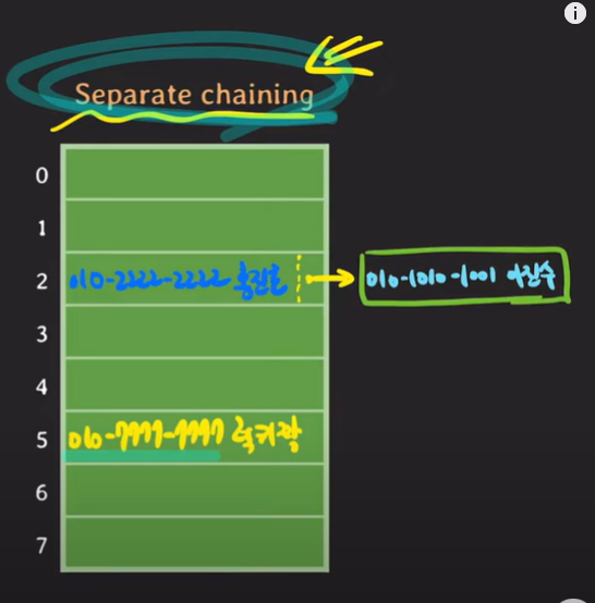 그림과 같이 같은 인덱스에 할당되게 된다면 연결 리스트를 통해서 데이터를 연결해준다!