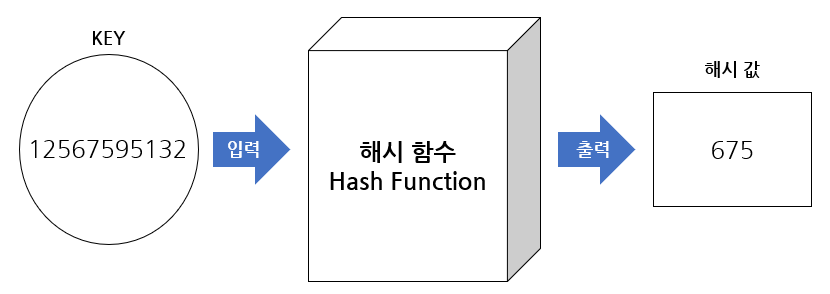 위에서 언급했듯이 해시 함수(Hash function)는 입력받은 데이터를 해시 값으로 출력시키는 알고리즘을 말한다.