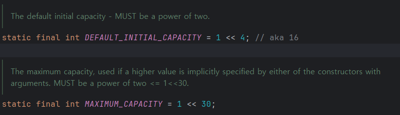 기본 용량은 1<<4 인 16으로 설정되어 있었다.