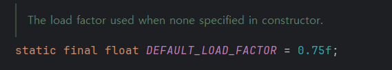 해시테이블이 75%만큼 찼을 때, 테이블 크기를 2배로 늘리도록 설정되어있었다.