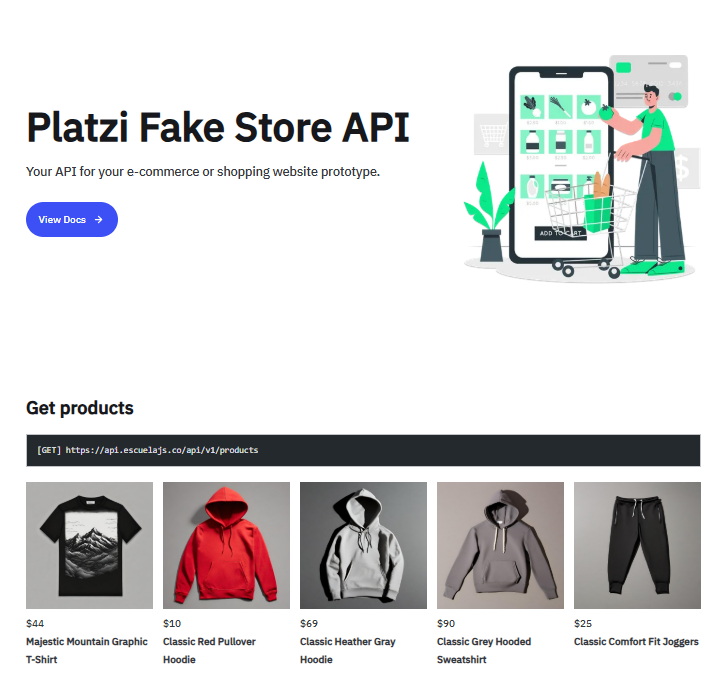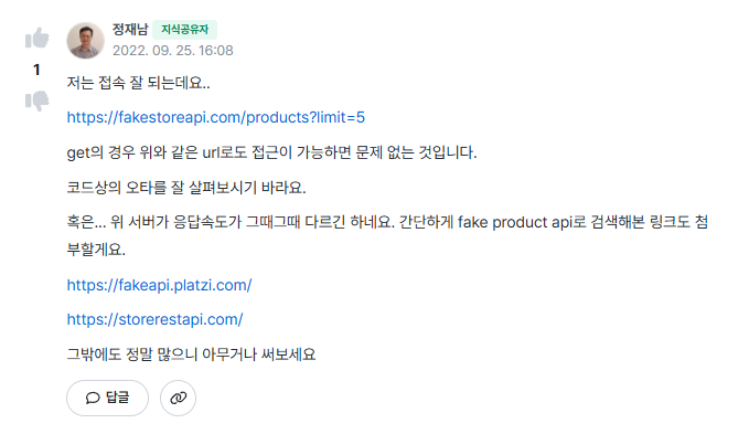 이 중 platzi의 api가 활용하기 좋을 것 같아서 테스트해보았다.