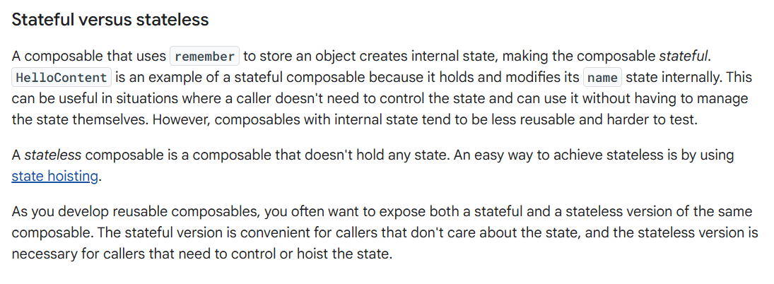 - 상태를 갖지 않는 컴포저블은 Stateless 하다고 볼 수 있다.