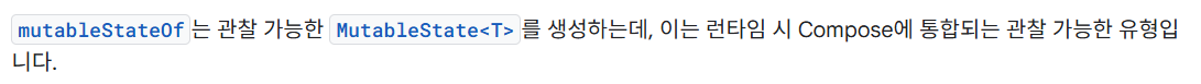 mutableStateOf의 설명은 다음과 같이 작성되어있다.