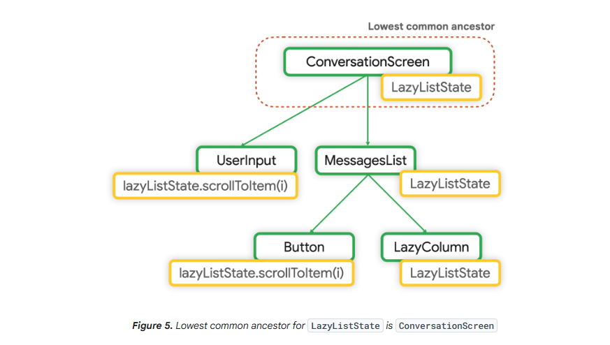 LazyColumn의 스크롤을 조작해야 하기 때문에, UserInput과 Button 모두 LazyListState가 필요할 것이다.