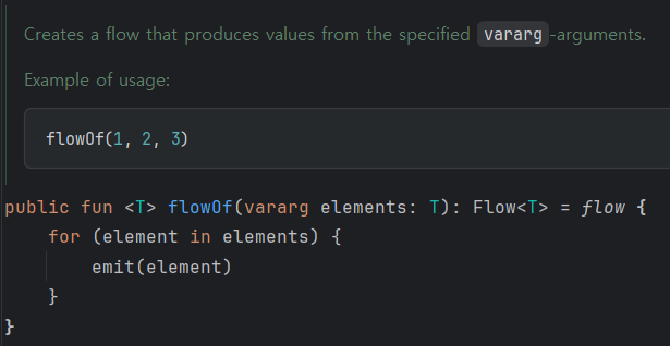 flow builder인 flow, flowOf, asFlow로 데이터가 내부에서 생성되는지 확인해보았다.
