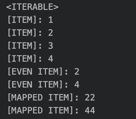 .map { println("[EVEN ITEM]: $it"); it * 11 }