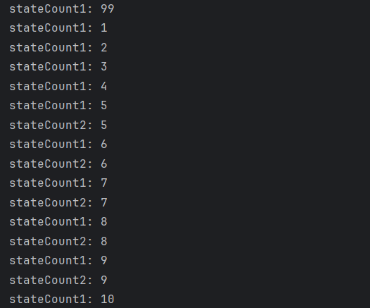이대로 실행을 시킨다면 statecount1의 경우 초기값인 99부터 , 1 , 2, 3, ~100의 값을 다 받을 수 있지만