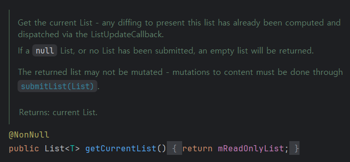 getCurrentList() 를 통해 이를 반환받을 수 있다.