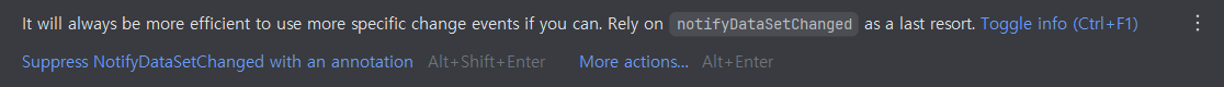 그렇기에 notifyItemRangeInserted() 와 같은 구체적인 notify 함수를 사용해야 하는데,
