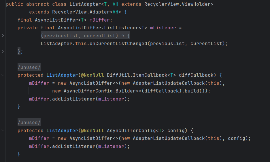 우선 ListAdapter 에서는 AsyncListDiffer 를 포함하고 있다.